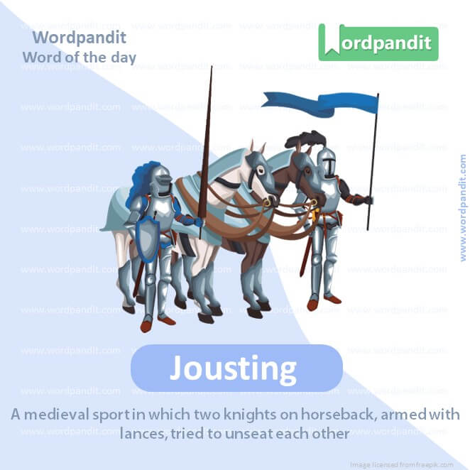 Meaning: A medieval sport in which two knights on horseback, armed with lances, tried to unseat each other.