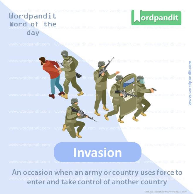 Meaning: An occasion when an army or country uses force to enter and take control of another country.