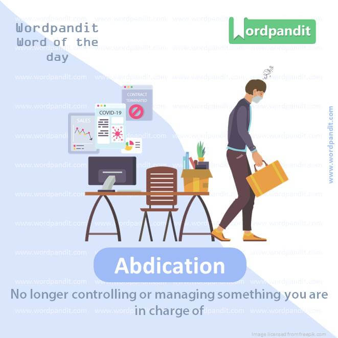 Synonyms: Renunciation, relinquishment, surrender, resignation, ceding, waiving, waiver, yielding, abjuration, cession, quitclaim, giving up, etc.