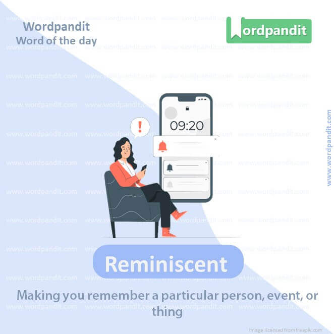 Synonyms: Evocative, redolent, similar, bringing to mind, implicative, mnemonic, nostalgic, recollective, remindful.