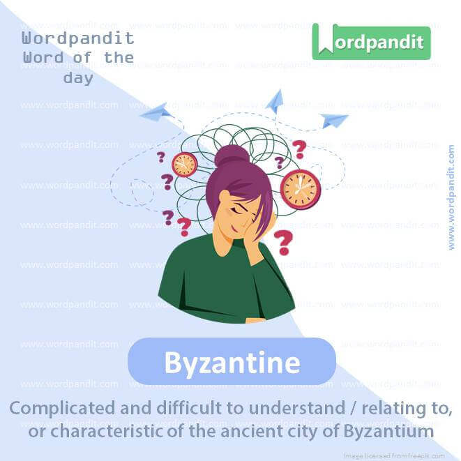 Meaning: Complicated and difficult to understand/relating to, or characteristic of the ancient city of Byzantium.