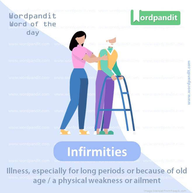 Meaning: Illness, especially for long periods or because of old age / a physical weakness or ailment.