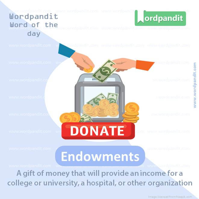 Meaning: A gift of money that will provide an income for a college or university, a hospital, or other organization.