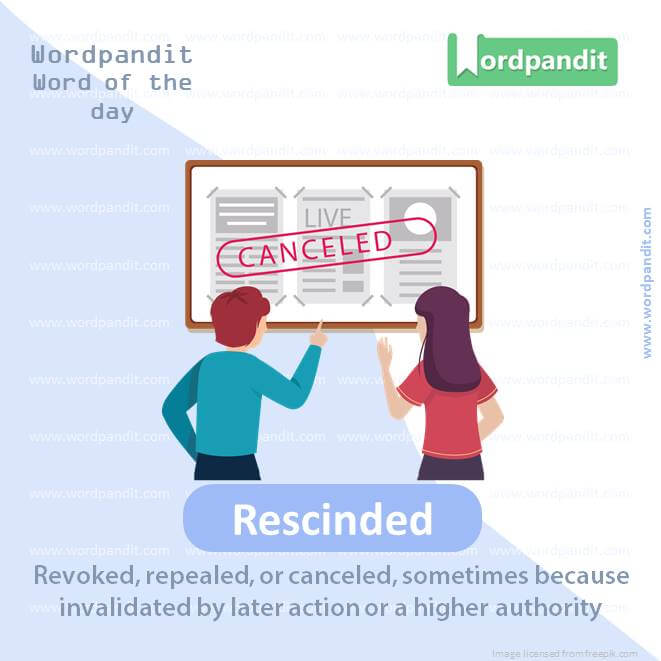 Meaning: Revoked, repealed, or canceled, sometimes because invalidated by later action or a higher authority.