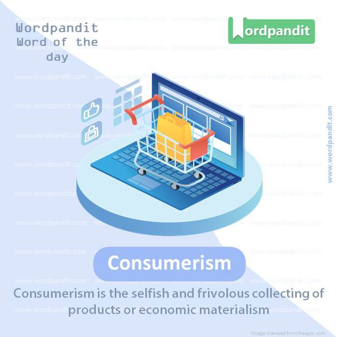 Meaning: Consumerism is the selfish and frivolous collecting of products or economic materialism.