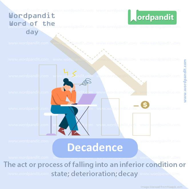 Meaning: The act or process of falling into an inferior condition or state; deterioration; decay.
