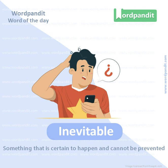 Synonyms: Imminent, impending, inescapable, inexorable, irresistible, necessary, unavoidable, undeniable, binding, doomed, pat, etc.