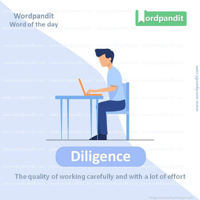 Meaning: The quality of working carefully and with a lot of effort.