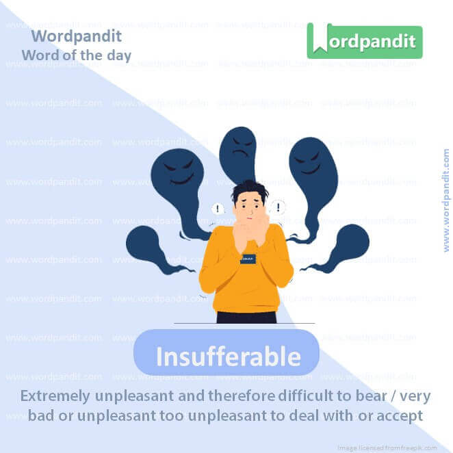 Meaning: Extremely unpleasant and therefore difficult to bear / very bad or unpleasant too unpleasant to deal with or accept.