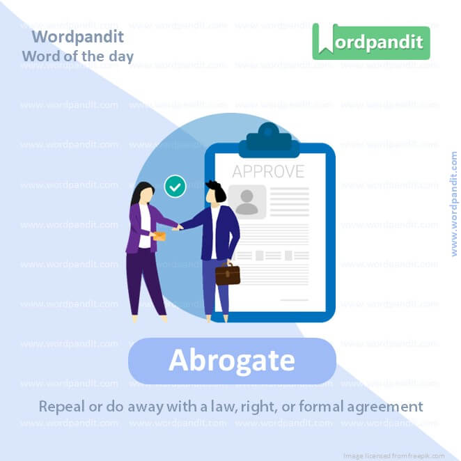 EXPLANATORY PARAGRAPH: Imagine if there was a rule at home that you must go to bed by 8 PM, but then your parents decide that this rule is no longer needed, so they remove it. When a rule or law is taken away like this, it’s like abrogating the rule. It means to officially end or cancel something.