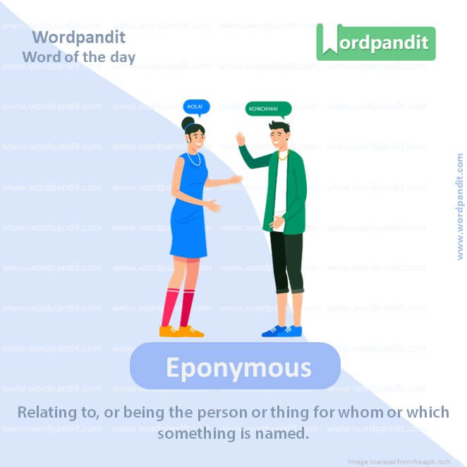 EXPLANATORY PARAGRAPH: Imagine a book with a title that’s also the name of the main character, like “Alice in Wonderland.” That’s like “eponymous.” It means something that’s named after a person, like a company named after its founder or a song named after the singer.