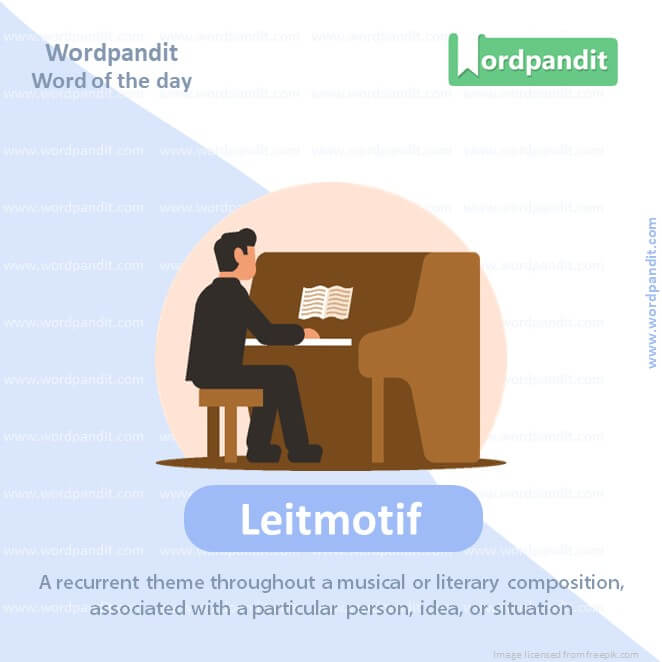 MEANING: A recurrent theme throughout a musical or literary composition, associated with a particular person, idea, or situation (noun).