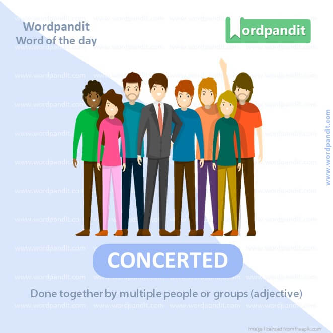 EXPLANATORY PARAGRAPH: Imagine you and your friends are building a big sandcastle. Everyone is working together, helping each other, and doing their best. That’s what “concerted” means – when everyone works together to do something.