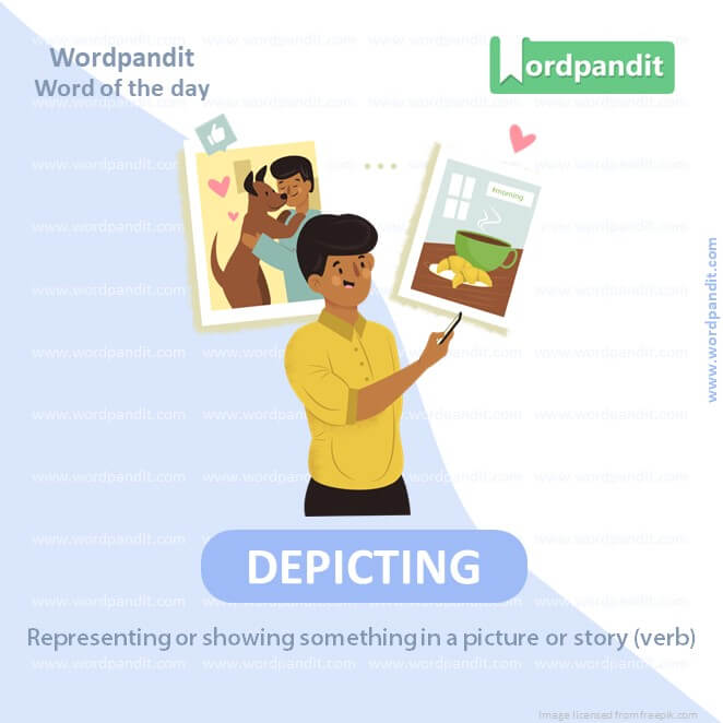 EXPLANATORY PARAGRAPH: Imagine drawing a picture of your pet or family. You’re showing what they look like through your drawing. “DEPICTING” is like showing or representing something through art, words, or images.