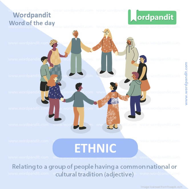MEANING: Relating to a group of people having a common national or cultural tradition. (adjective)