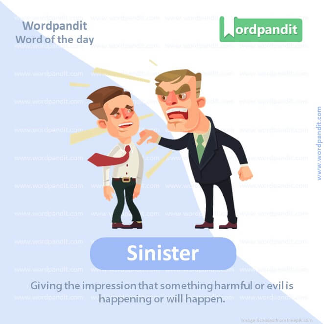 EXPLANATORY PARAGRAPH: “Sinister” is like when you watch a movie and there’s a spooky or bad character that makes you feel a little scared or uneasy. That kind of feeling or person is called “sinister.”