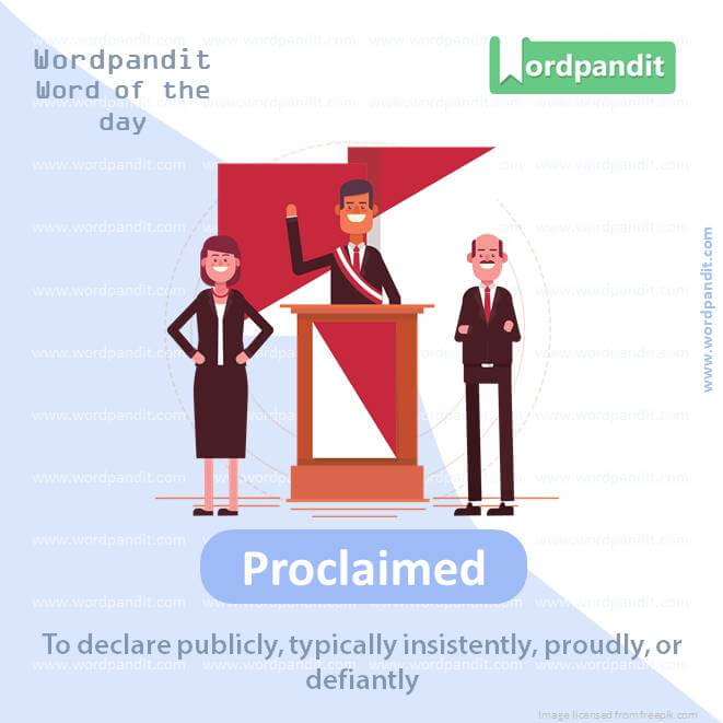 EXPLANATORY PARAGRAPH: Imagine you have a big announcement, like “It’s my birthday today!” and you tell everyone about it. That’s like “proclaimed”. It’s when someone announces or says something publicly and loudly.