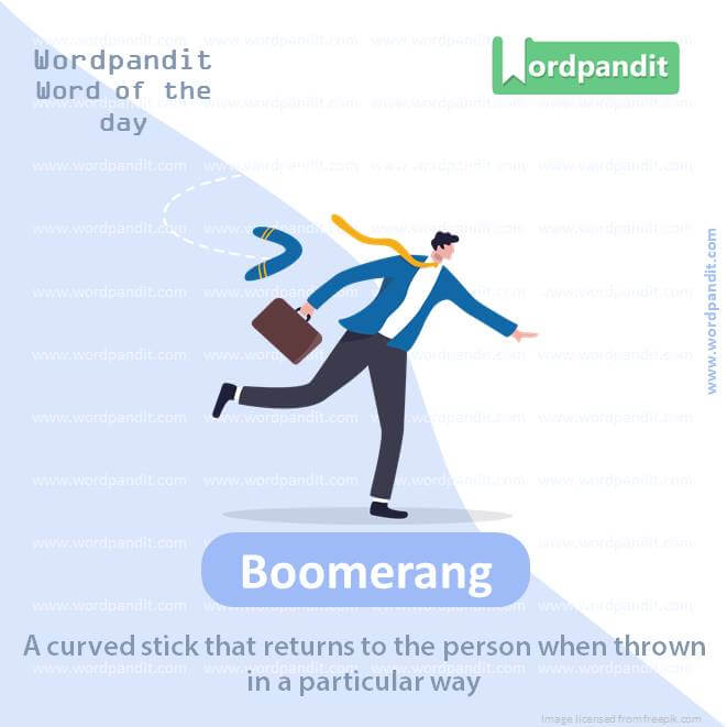 MEANING: A curved stick that returns to the person when thrown in a particular way (verb).