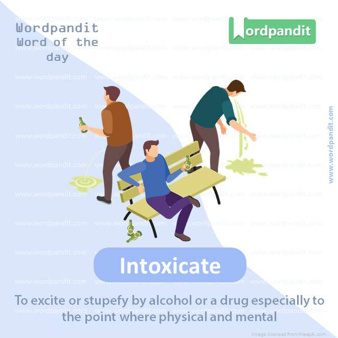 MEANING: To excite or stupefy by alcohol or a drug especially to the point where physical and mental (verb).