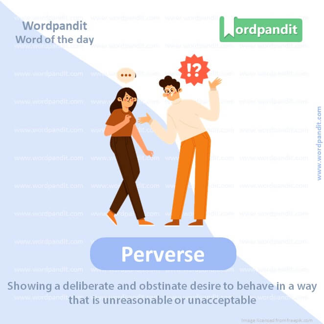 EXPLANATORY PARAGRAPH:Imagine if you wanted to go straight, but you kept walking in circles instead, just because you wanted to be different. That’s what “perverse” means. It’s when someone does the opposite of what’s expected or right, just to be difficult.