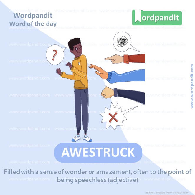 EXPLANATORY PARAGRAPH: Awestruck is when you see something so amazing or beautiful that you can’t even talk. It’s like seeing a huge rainbow or a fireworks show and thinking, “Wow!”