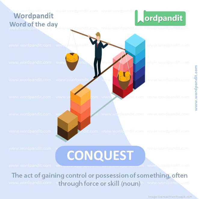 EXPLANATORY PARAGRAPH: Conquest means to win or take something by using strength or clever tricks. Imagine you’re playing a game of tag, and you tag everyone. You would be the winner or make a conquest!