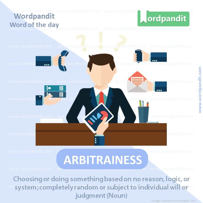 MEANING: Choosing or doing something based on no reason, logic, or system; completely random or subject to individual will or judgment (Noun).