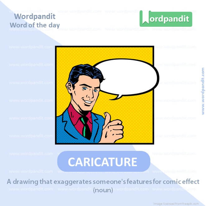 MEANING: A drawing that exaggerates someone’s features for comic effect (Noun).