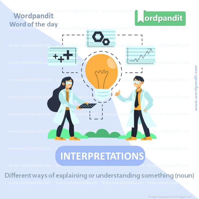 SYNONYMS: Explanations, understandings, viewpoints, readings, perspectives