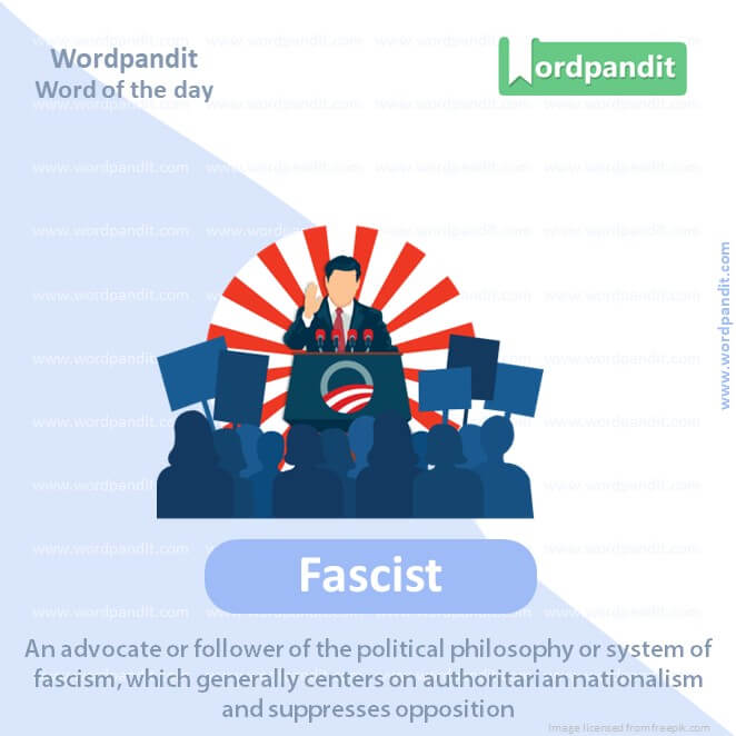 Meaning: An advocate or follower of the political philosophy or system of fascism, which generally centers on authoritarian nationalism and suppresses opposition.