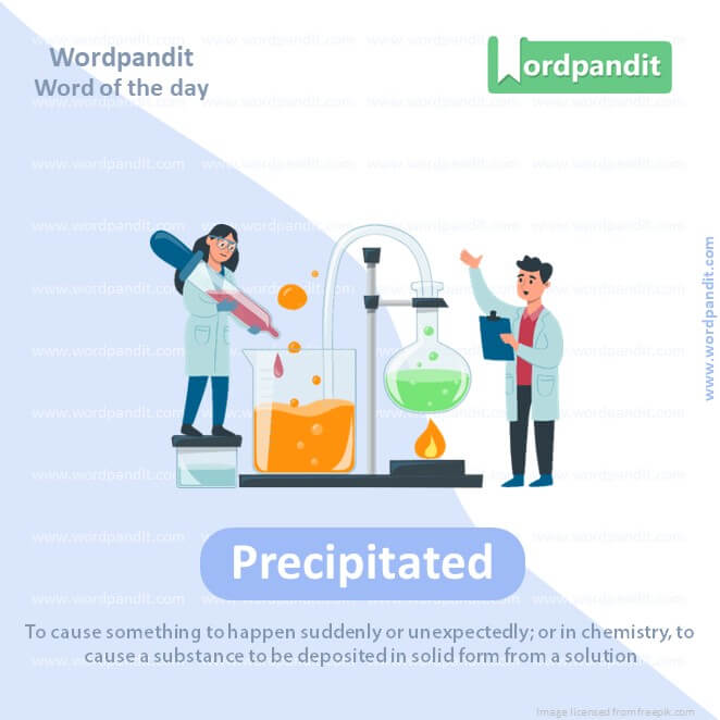 Meaning: To cause something to happen suddenly or unexpectedly; or in chemistry, to cause a substance to be deposited in solid form from a solution.