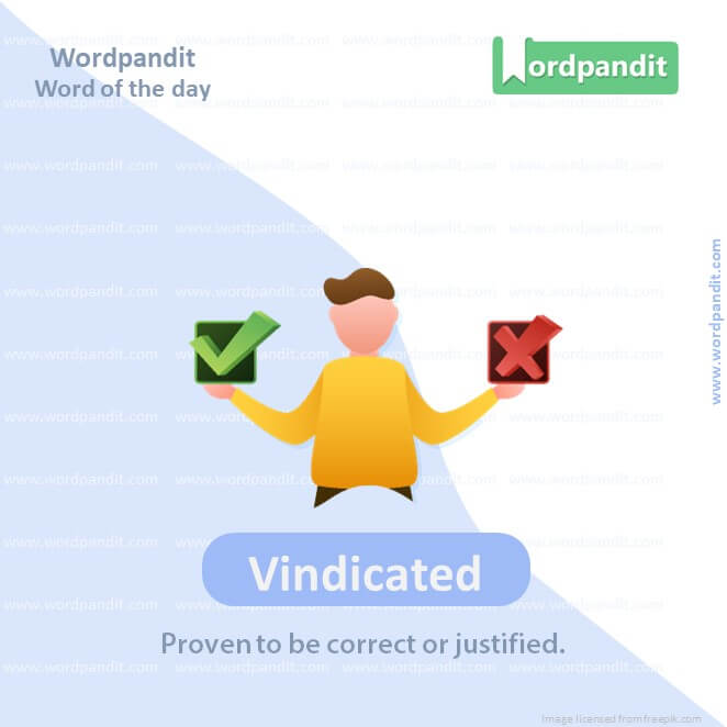 Synonyms: Justified, absolved, exonerated, cleared, acquitted, exculpated, proven right, defended, supported, upheld.