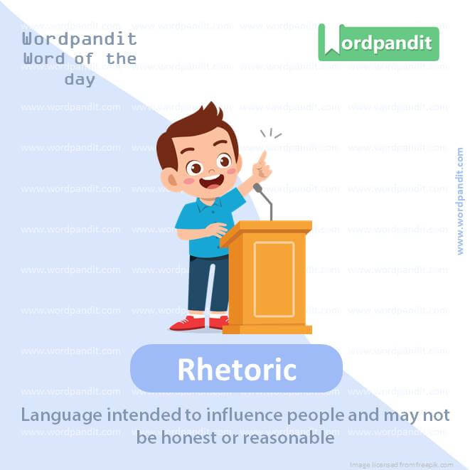 EXPLANATORY PARAGRAPH: Imagine someone speaking persuasively, using language that sounds good but lacks substance or sincerity. That’s “rhetoric”—the art of effective or persuasive speaking or writing, often without meaningful content.