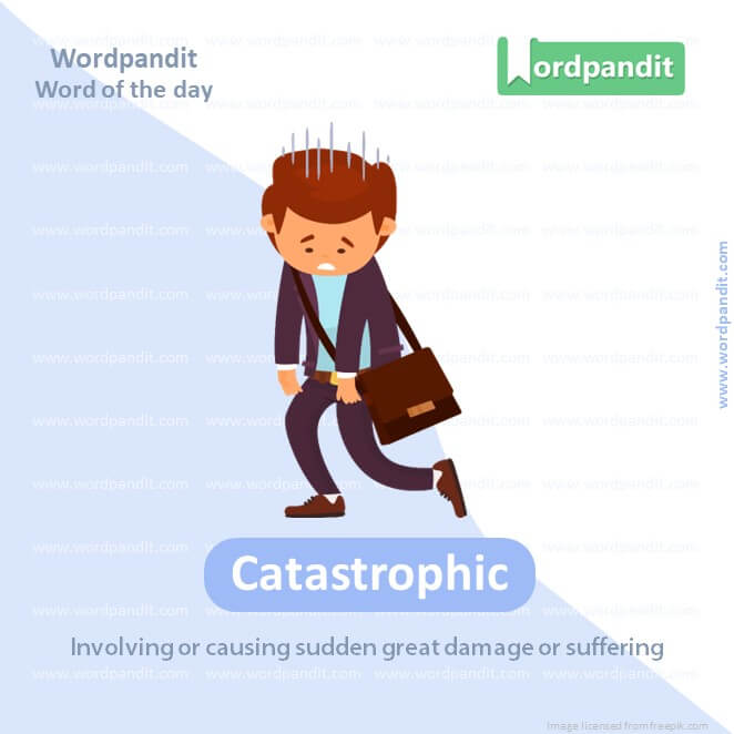 EXPLANATORY PARAGRAPH: Imagine a series of unfortunate events leading to a massive disaster. That’s what “catastrophic” describes—an event causing great and usually sudden damage or suffering.