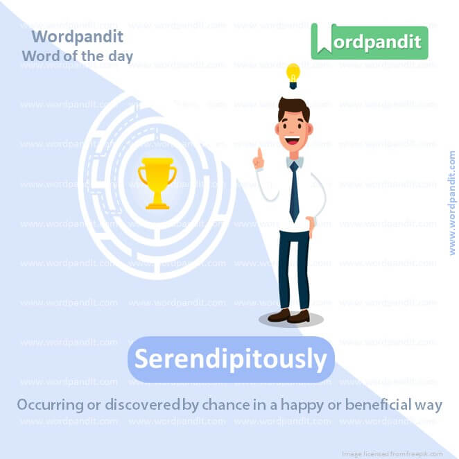 EXPLANATORY PARAGRAPH: Imagine you found a candy on the street when you least expected it. That’s serendipity! And when something happens in that surprise, happy way, we say it happened “serendipitously”.