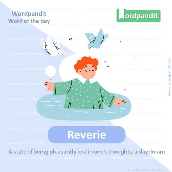 EXPLANATORY PARAGRAPH: Reverie is like a daydream. Imagine floating on a cloud and thinking happy thoughts; that’s being in a reverie.