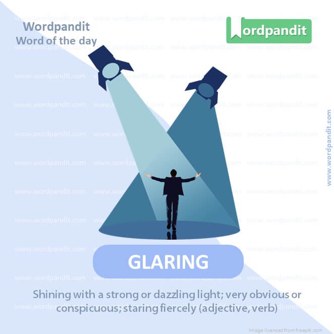MEANING: Shining with a strong or dazzling light; very obvious or conspicuous; staring fiercely (adjective, verb).