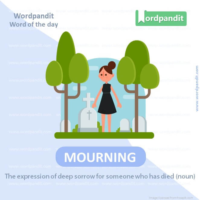 MEANING: The expression of deep sorrow for someone who has died, typically involving following certain conventions such as wearing black clothes (noun).