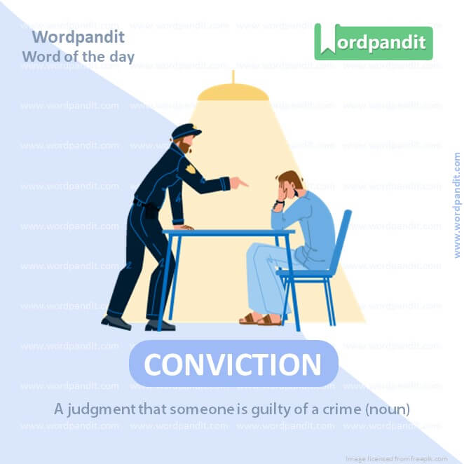 EXPLANATORY PARAGRAPH: Conviction can mean two things. One is when someone is told they did something wrong by a court. The other is when you really, really believe in something, like how you might believe that chocolate is the best flavor!