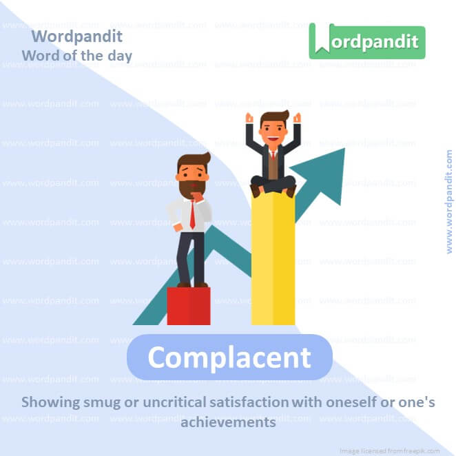 EXPLANATORY PARAGRAPH: Let’s say you’re really good at a game, and you’ve won many times. If you start thinking you’ll always win and stop practicing or trying hard, you’re becoming “complacent.” It’s like feeling too cozy and not worrying about getting better or facing challenges.