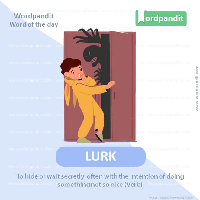 EXPLANATORY PARAGRAPH: Imagine you’re playing hide-and-seek. You hide quietly behind a tree and peek out just a little to see where your friends are. You’re lurking! Lurking means you’re hiding and waiting, maybe to surprise someone, but sometimes people lurk when they’re up to no good, like a cartoon villain hiding behind a rock.