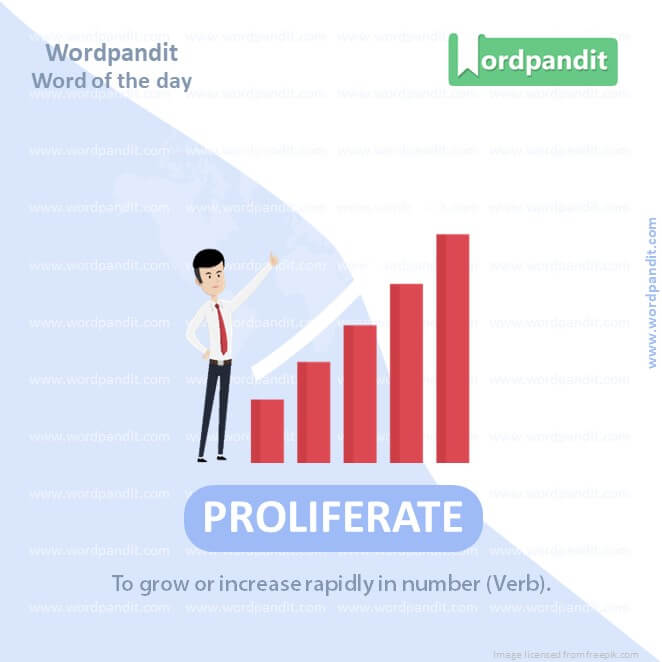 EXPLANATORY PARAGRAPH: You know how one bunny can quickly become lots of bunnies? That’s because bunnies proliferate; they grow in number really fast. It’s like when you pour water on a plant, and it starts to grow lots of leaves and flowers. Proliferate means something is growing or spreading quickly.