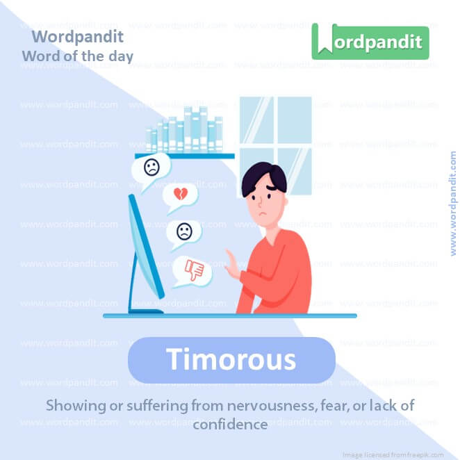EXPLANATORY PARAGRAPH: Timorous is like when you’re scared of the dark and you don’t want to go to the bathroom alone at night. It means you’re showing or suffering from nervousness or fear.