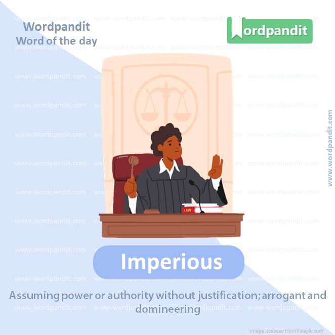 EXPLANATORY PARAGRAPH: Imperious is an adjective used to describe a person who acts like a king or queen, and expects other people to do what they want. If someone is bossy and thinks everyone should do things their way, they’re being imperious.