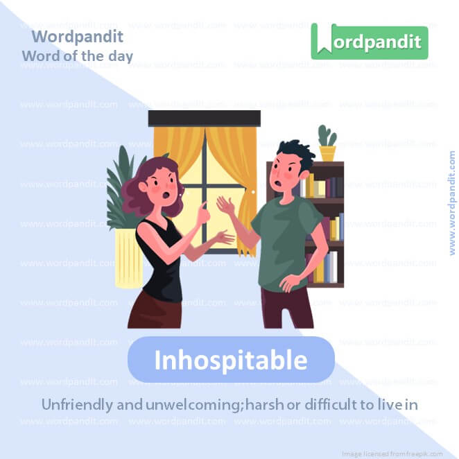 EXPLANATORY PARAGRAPH: Inhospitable is when a place is not really friendly or nice to be in. Imagine being at a birthday party where no one offers you cake or even talks to you; that’s what inhospitable feels like.
