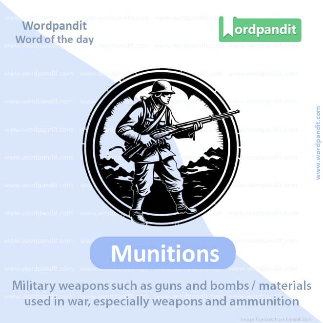 EXPLANATORY PARAGRAPH: Imagine a toy soldier with tiny toy weapons. Munitions are materials like bullets, bombs, and other items used in fighting.
