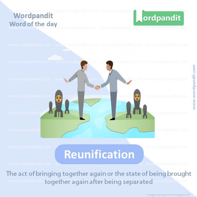 EXPLANATORY PARAGRAPH: Imagine if you and a friend were separated and then you came back together to play. Reunification means bringing people or things back together again after being apart.