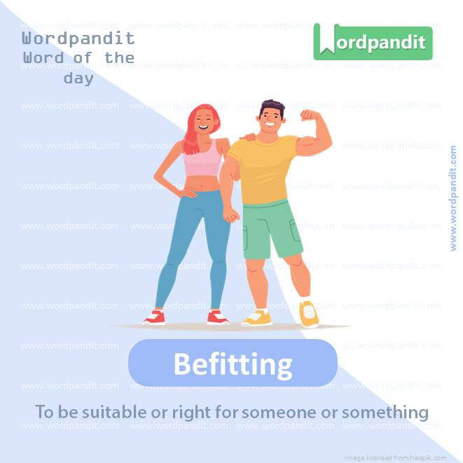 EXPLANATORY PARAGRAPH: Befitting is like when you wear your nicest clothes for a special occasion. It means something is just right or appropriate for the situation.