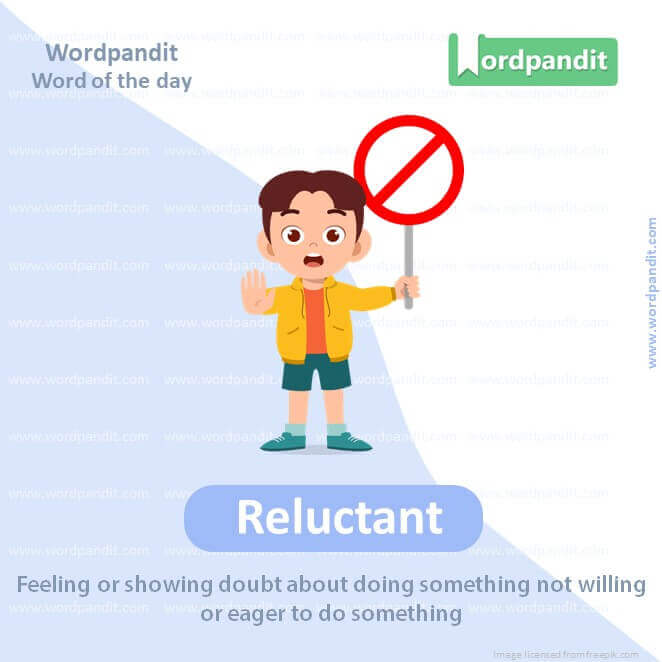 EXPLANATORY PARAGRAPH: If you are “reluctant,” it means you don’t want to do something or you are not very eager to do it, like if you are reluctant to go to bed early because you want to stay up and play.