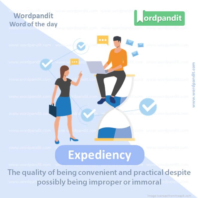 EXPLANATORY PARAGRAPH: If you do something quickly and easily, even if it’s not the best way, that’s called “expediency.” It’s like choosing the fastest way to get something done, even if it’s not perfect.